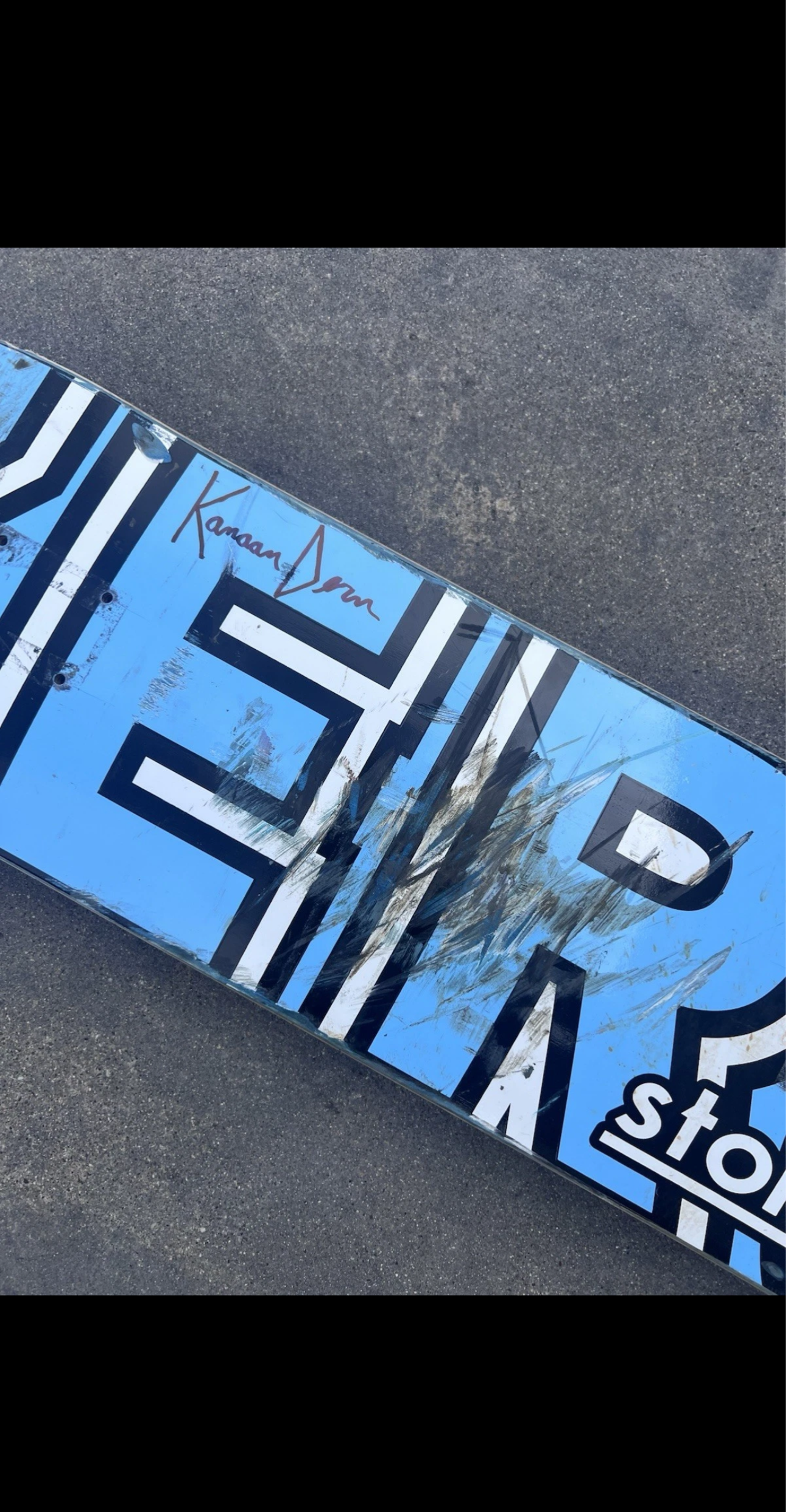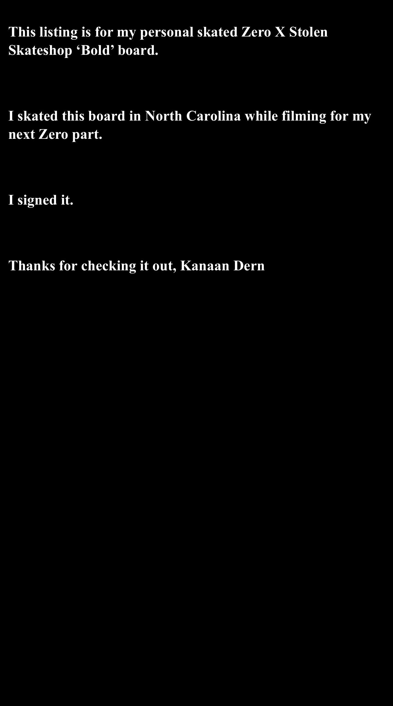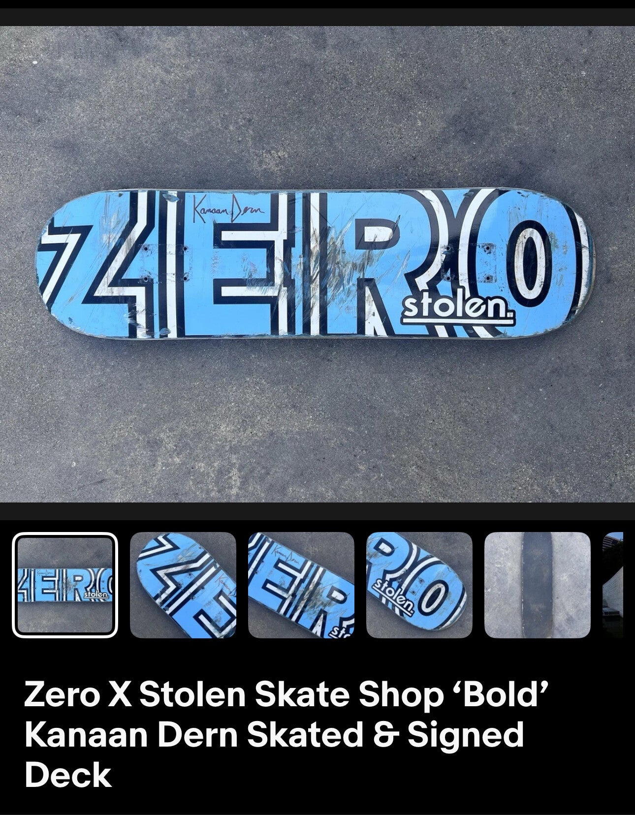 This deck was signed and skated by pro skater Kanaan Dern For the board is a Zero SkateShop Collaboration with Stolen SkateShop.