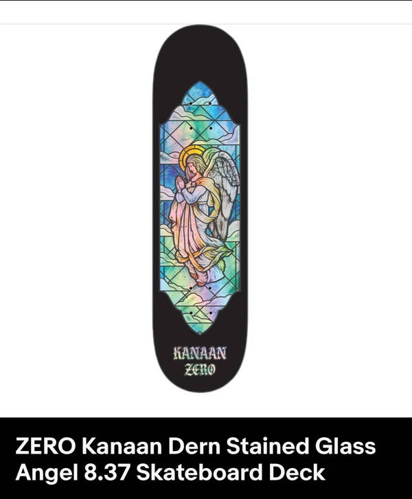 This is a pro model Kanaan Dern skateboard apart of the 2025 rare Zero Stained Glass set.