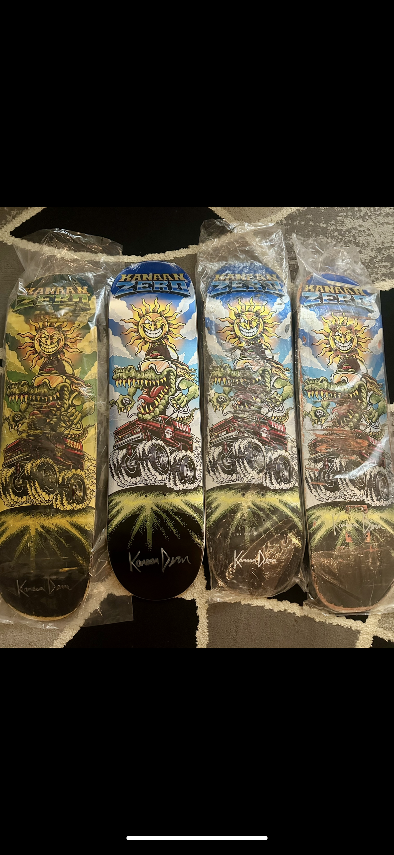 These series of Zero Pro model Skateboards are Skated and signed by Pro skater Kanaan Dern 3 of 4 skated & signed 1 brand new signed!!!