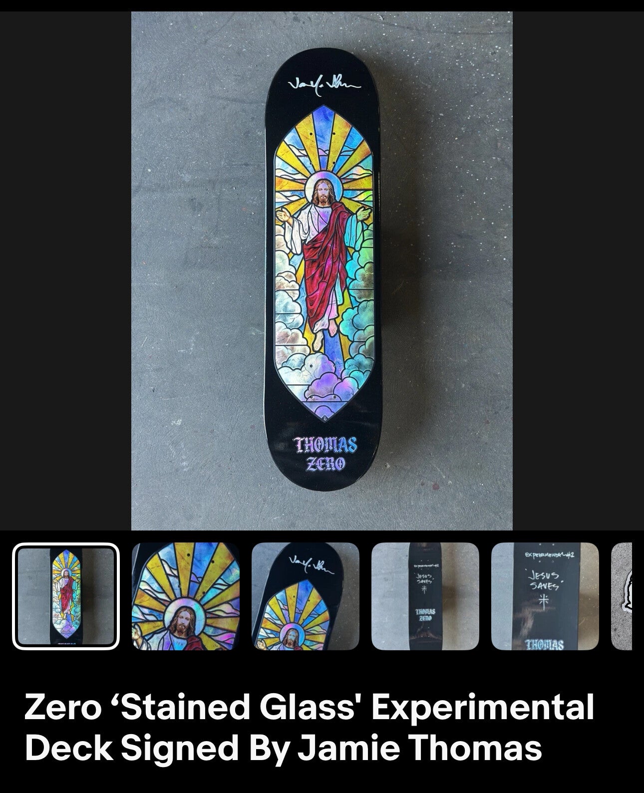 This is very rare pro model Jamie Thomas skateboard apart of a series from the skateboard company ZERO that came out in 2025 that was inspired by another ultra rare skateboard series ZERO Cathedral that came out in the early 2000's these boards are rare and once gone almost impossible to find.